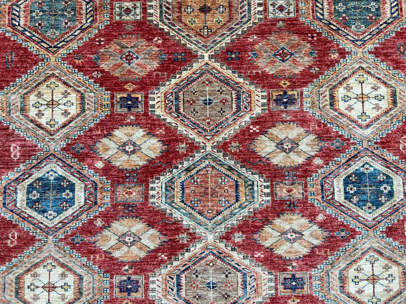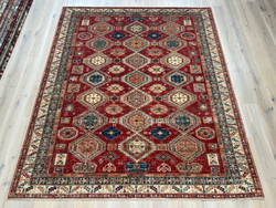 Kazak rug designs originate from Azerbaijan and take their name from the Gazakh region. Over the last century the Kazak rug designs have migrated across the rug weaving regions of central Asia, being embraced and adapted along the way. Kazak rugs now enjoy acclaimed status as a staple of the rug design world. The Kazak rug designs are typically bold, geometric and embracing a warm palette of jewel colours.