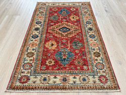 Kazak rug designs originate from Azerbaijan and take their name from the Gazakh region. Over the last century the Kazak rug designs have migrated across the rug weaving regions of central Asia, being embraced and adapted along the way. Kazak rugs now enjoy acclaimed status as a staple of the rug design world. The Kazak rug designs are typically bold, geometric and embracing a warm palette of jewel colours.